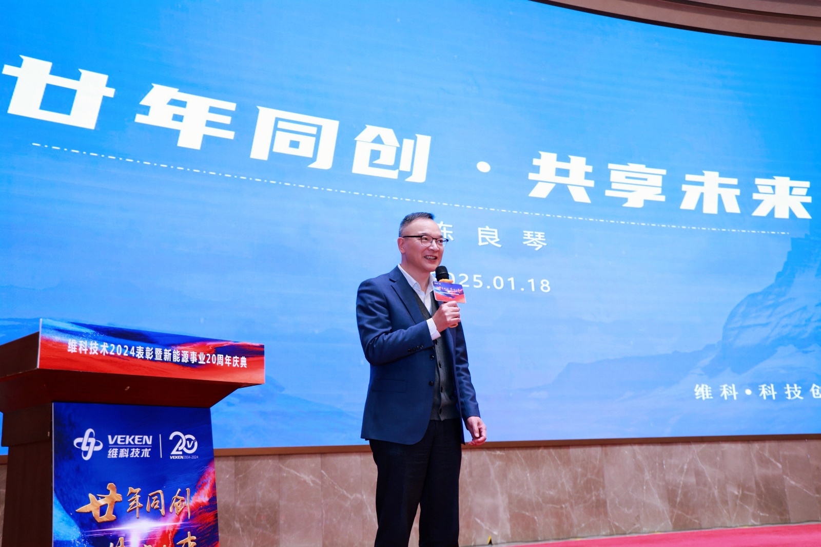 为表彰股份公司2024年各类先进,庆祝英国365集团官网发展新能源事业20周年,激励各级团队和全体员工紧紧围绕公司战略规划,一起绘制未来20年的宏伟蓝图,实现一年又一年的经营目标,2025年1月18日下午,“廿年同创·共享未来 —— 英国365集团官网 2024 表彰暨新能源事业 20 周年庆典” 在东莞基地隆重举行。控股集团何董事长及其他领导、横沥镇相关领导、股份公司各经营团队、年度先进、新能源事业20年荣誉人物及员工代表等230余人现场参会。