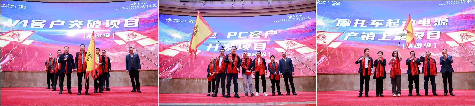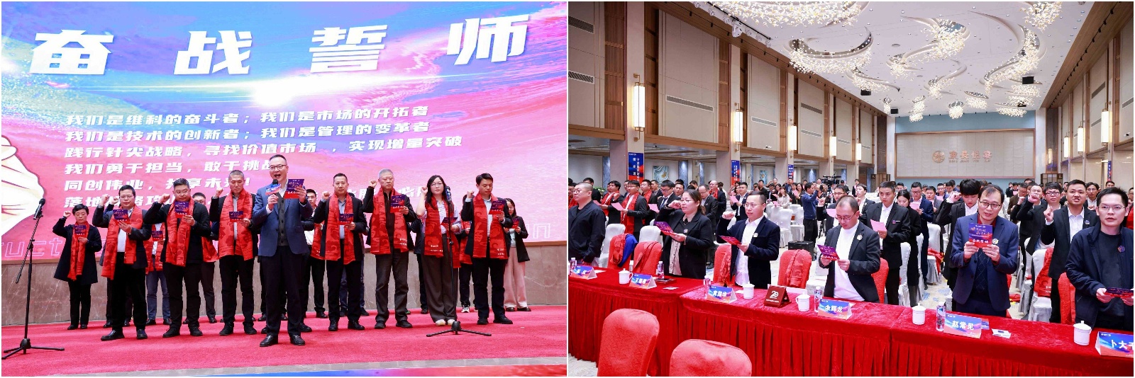 “使命必达” 环节则是责任的落实和决心的表态,陈总为3个集团级、6个股份公司级项目授旗,陈总从庄严的护旗队中接过战旗,逐个给各项目代表授旗,代表接过这份使命和责任,在喊出口号的那刹那展现出了他们坚决完成任务的决心。紧接着是“奋战誓师” 环节,陈良琴总带领股份公司领导、事业部班子上台宣誓,台下人员也一同庄严宣誓,誓言响彻全场,表达了全体英国365集团官网人对实现25年公司战略目标、突破重点战略项目的坚定信念。
