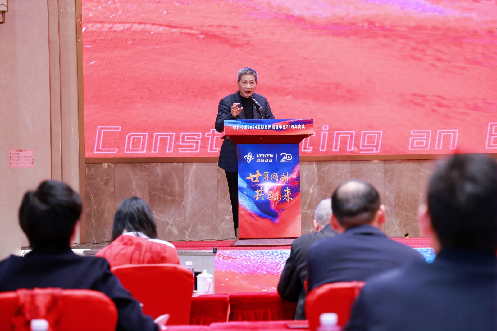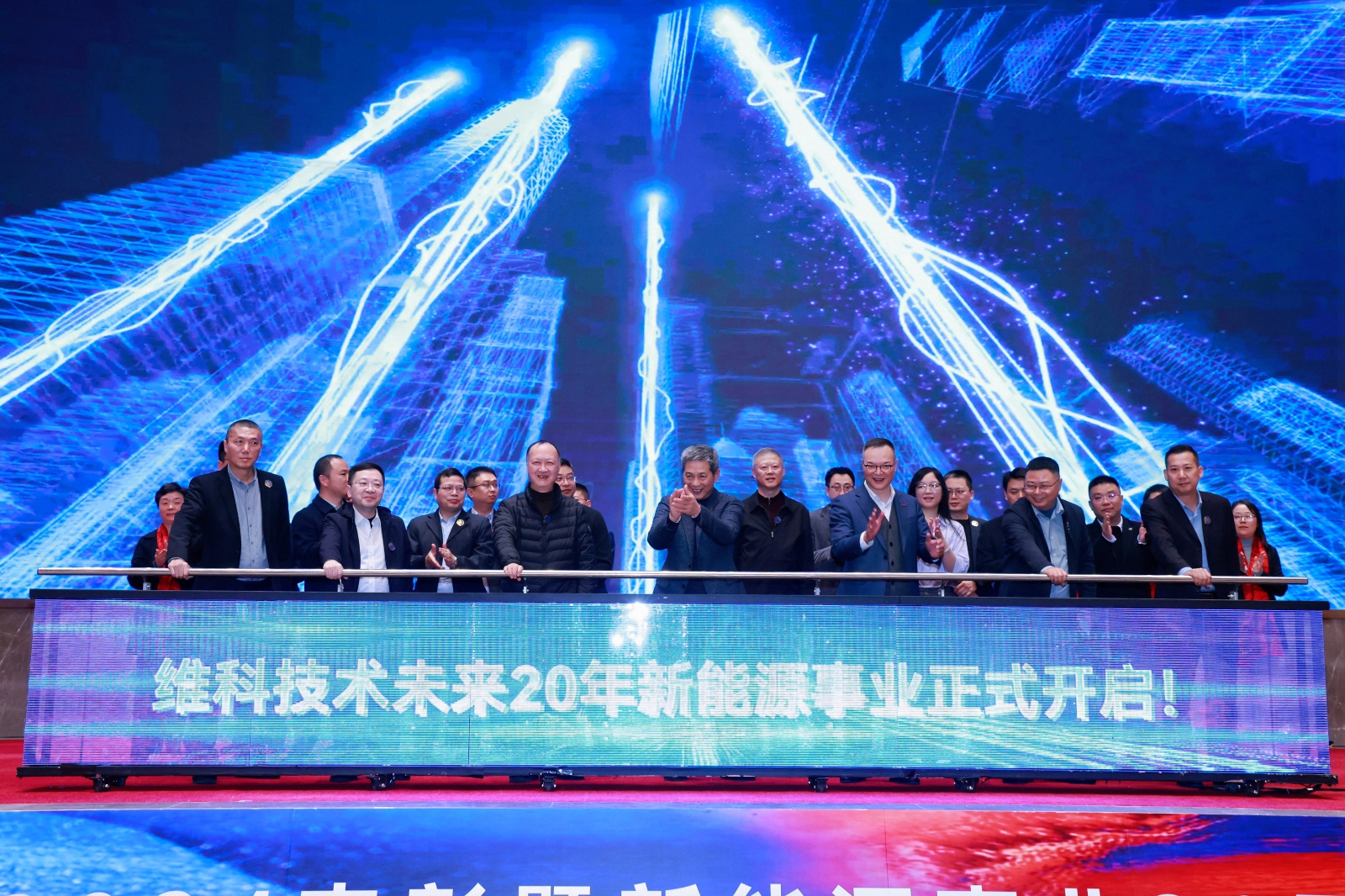 在激昂的氛围中,庆典进入第二篇章。一段精心制作的大事件视频,带领大家一同回顾了英国365集团官网深耕新能源行业 20 年期间的 20 件大事,从创业初期的艰难探索到如今的行业领先,每一个关键里程碑的达成都凝聚着全体英国365集团官网人的心血与汗水。